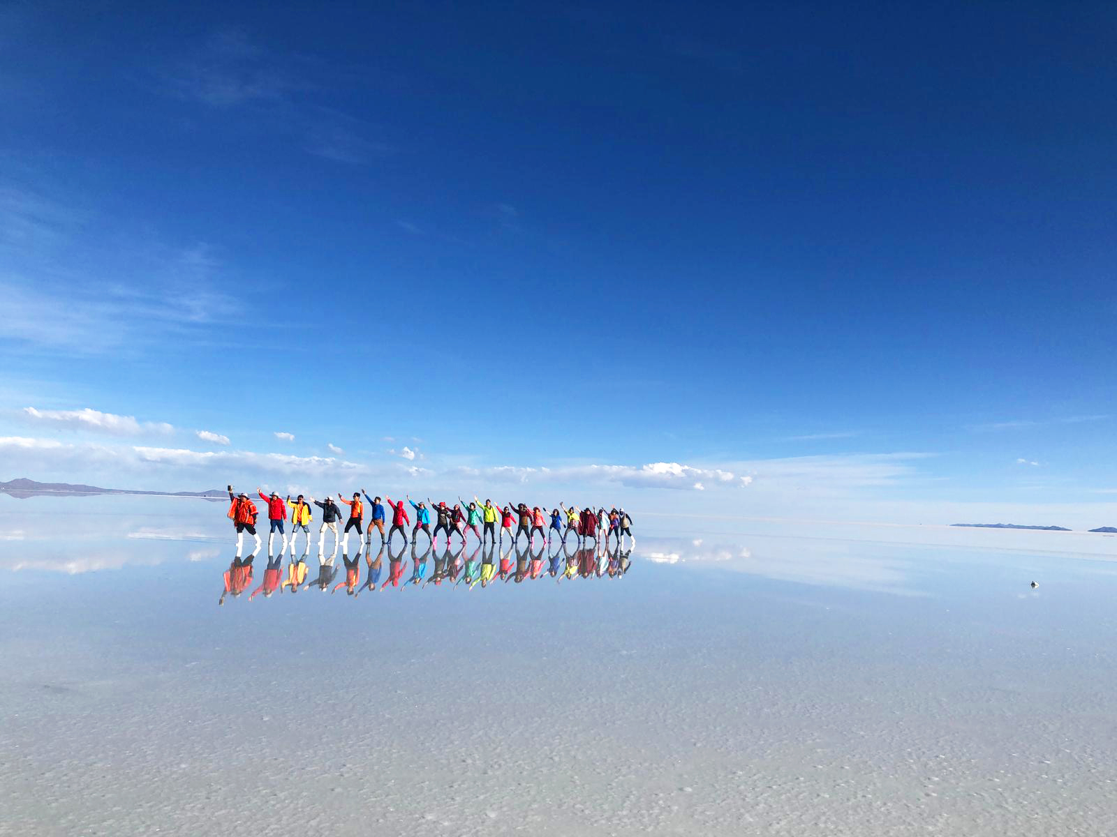 世界上最大的鹽湖。雨季時,大片的鹽晶體於雨後產生反射,平靜的湖面反射著天空景色,呈現出如天地合一的倒影,就是聞名的「天空之鏡」。如天氣情況許可,安排於鹽湖觀賞日落美景及晚上觀星。