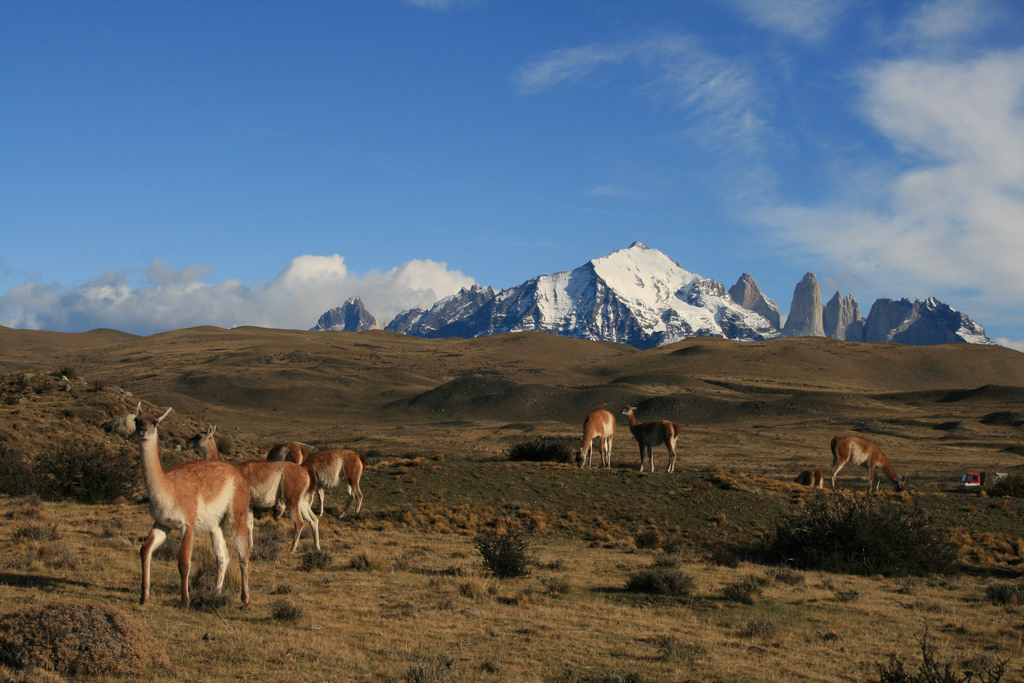 百內國家公園是安地斯山南段冰河時期遺留地形,以百內塔、百內角兩組花崗岩塔形山峰,以及宛如藍色緞帶的百內河、大小湖泊與冰河、瀑布為主要景觀。園區大草原不時可見南美野生駱馬(Guanaco)成群悠遊;湖畔鹽化區珍貴的紅鶴不時現身;遠處白雪皚皚的百內塔倒映在湛藍湖面,是百內的招牌美景!