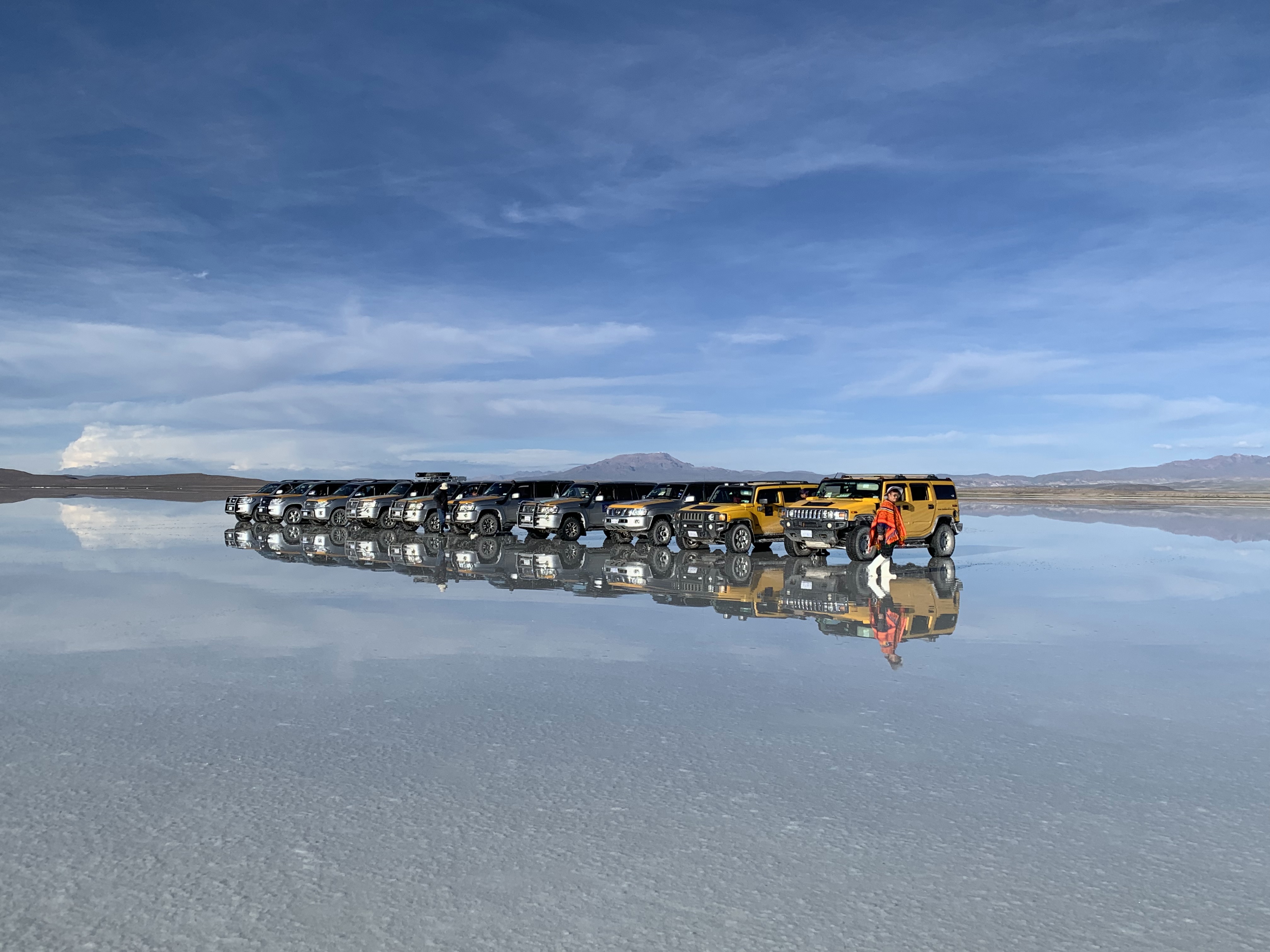 世界上最大的鹽湖。雨季時,大片的鹽晶體於雨後產生反射,平靜的湖面反射著天空景色,呈現出如天地合一的倒影,就是聞名的「天空之鏡」。如天氣情況許可,安排於鹽湖觀賞日落美景及晚上觀星。(天空之鏡是天然現象,如因天氣情況第24天無法觀賞,將於第25天早上補回。若最終未能觀賞,本公司將不作任何補償。)