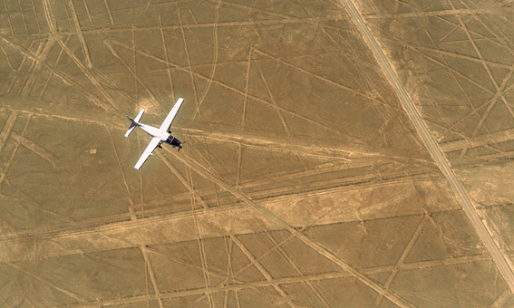 重本安排乘觀光飛機於空中鳥瞰巨型的幾何線條及動物等圖案。