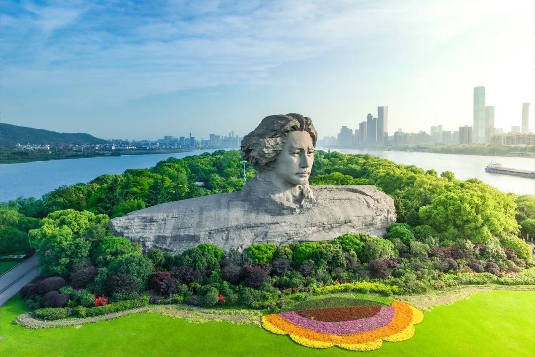 是一個狹長的沙洲島,因毛澤東的名句而聞名。特別安排乘坐專車,沿途打卡問天臺、詩詞碑、毛澤東青年藝術雕像等。