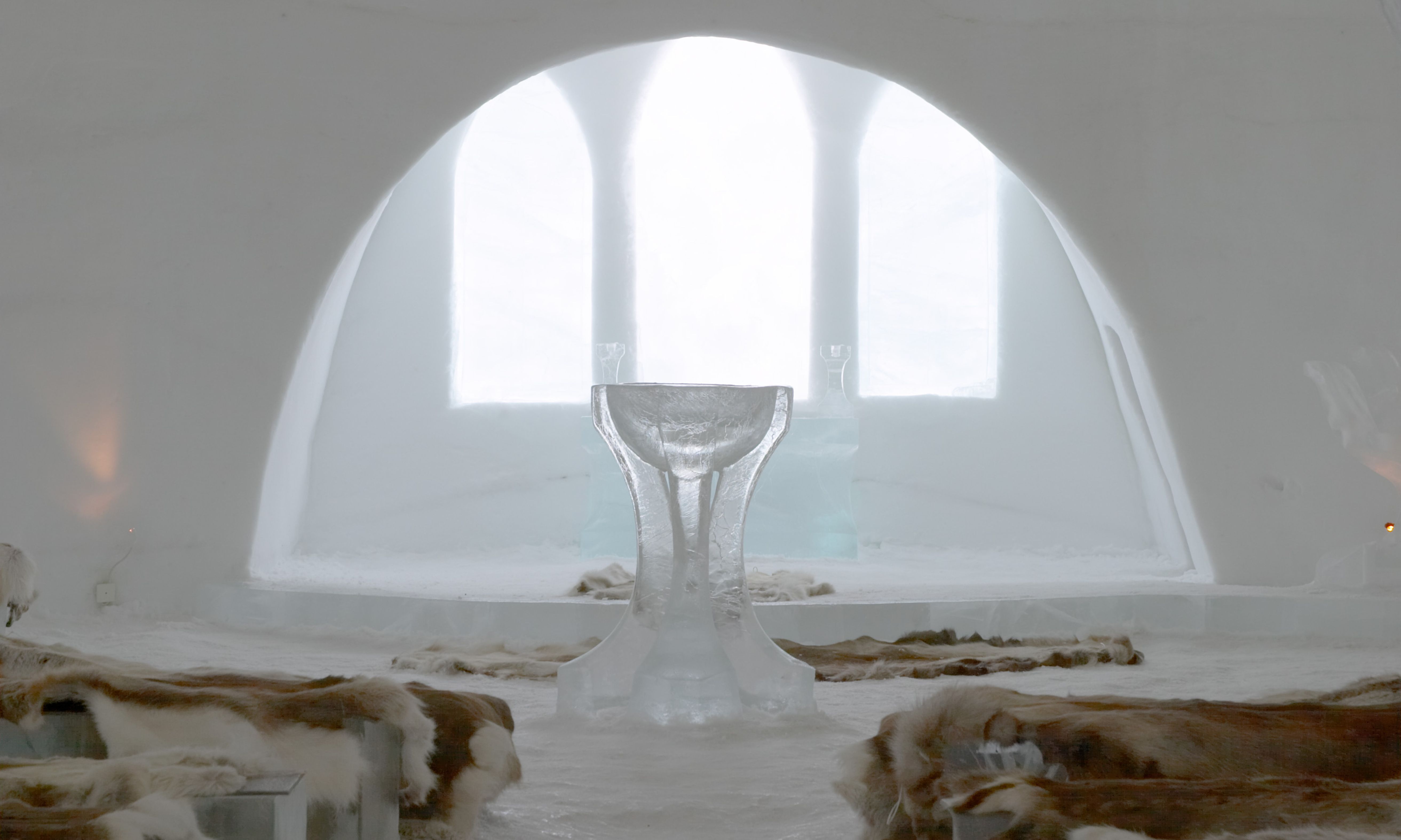 世上第一間冰酒店,建於1989年。每年12月入冬,當地人把附近托納河的冰塊打造成冰酒店和夢幻的藝術建築,直至明年的4月冰塊融化後流回托納河。