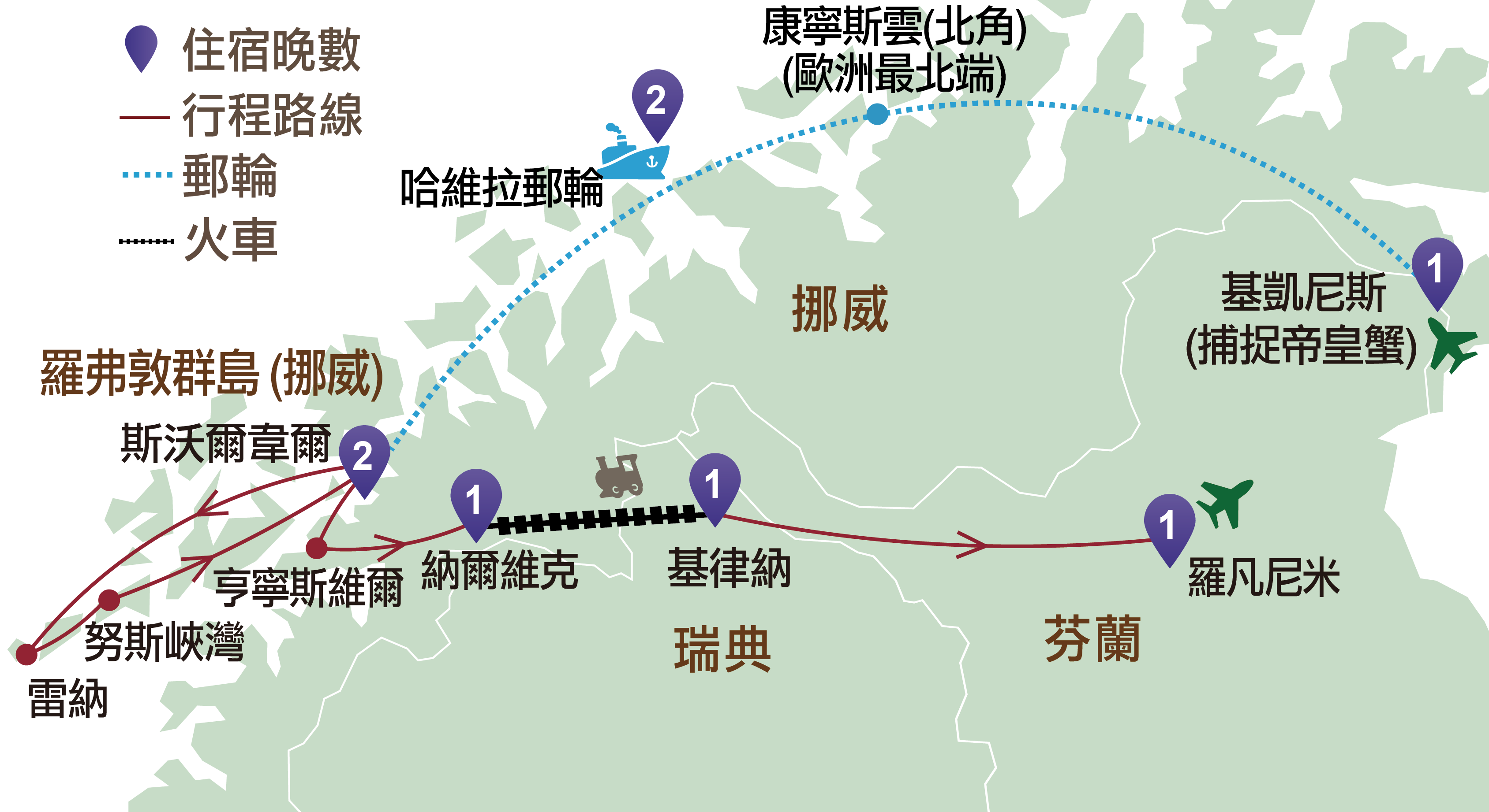 挪威:基凱尼斯、斯沃爾韋爾、雷納、努斯峽灣、亨寧斯維爾、納爾維克