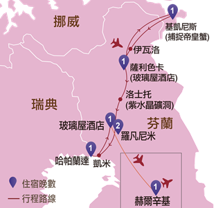芬蘭:依瓦洛、薩利色卡、洛士托、羅凡尼米、凱米、赫爾辛基