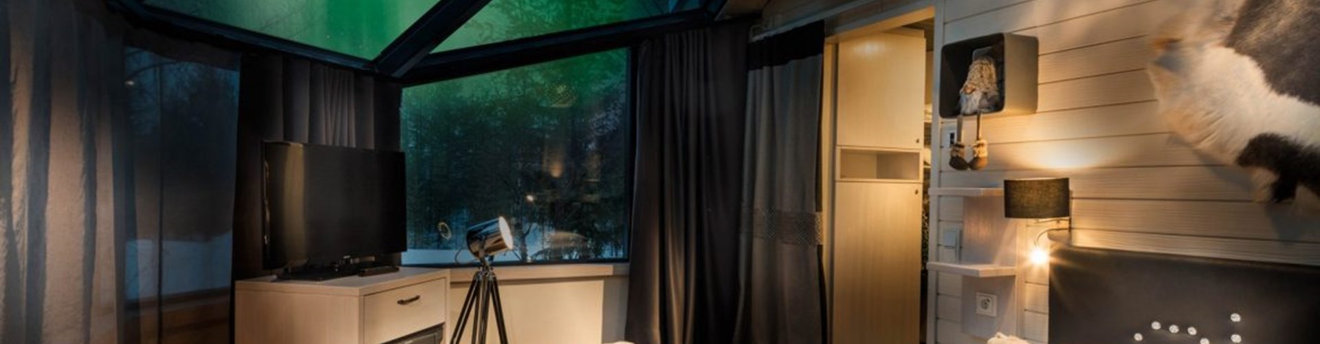 玻璃屋酒店是為了觀賞極光而設計的靈感來自傳統的拉普蘭小屋。部份屋頂由透明玻璃建成,而且類型繁多。玻璃都是保溫玻璃,可保持屋內溫暖,也可防止屋頂積雪情況出現。即便在極寒天氣下,屋內都是暖暖的,提供一個舒適的環境觀賞極光,是畢生難得的體驗。(玻璃屋類型繁多,圖片只供參考)