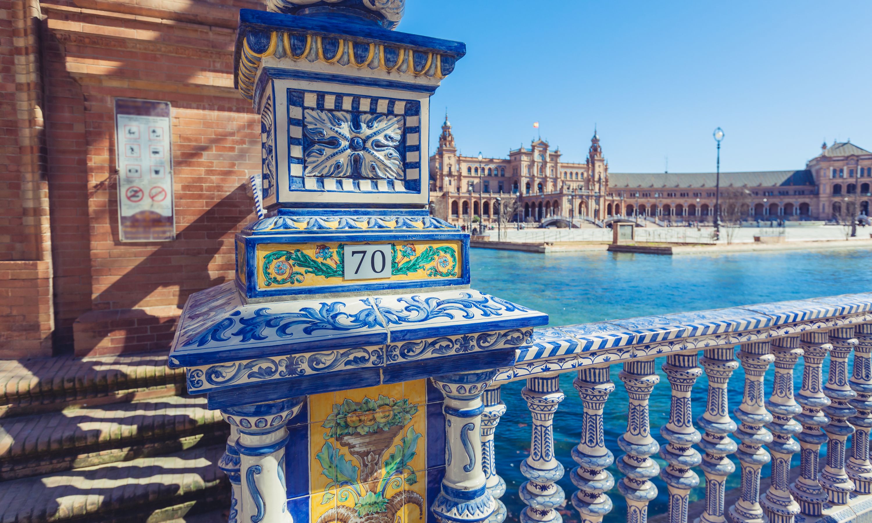 1992年西班牙舉辦世界博覽會的所在地,廣場呈半圓形,彩繪瓷磚壁畫介紹西班牙各個城市的地理位置,和過去歷史與當地特色文化。