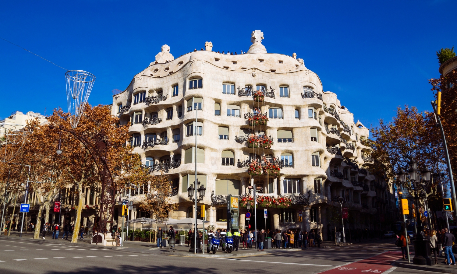 高迪設計的私人豪宅,外形以波浪紋為主,不規則牆面和平臺戴頭盔的士兵造型煙窗是它著名的標誌。