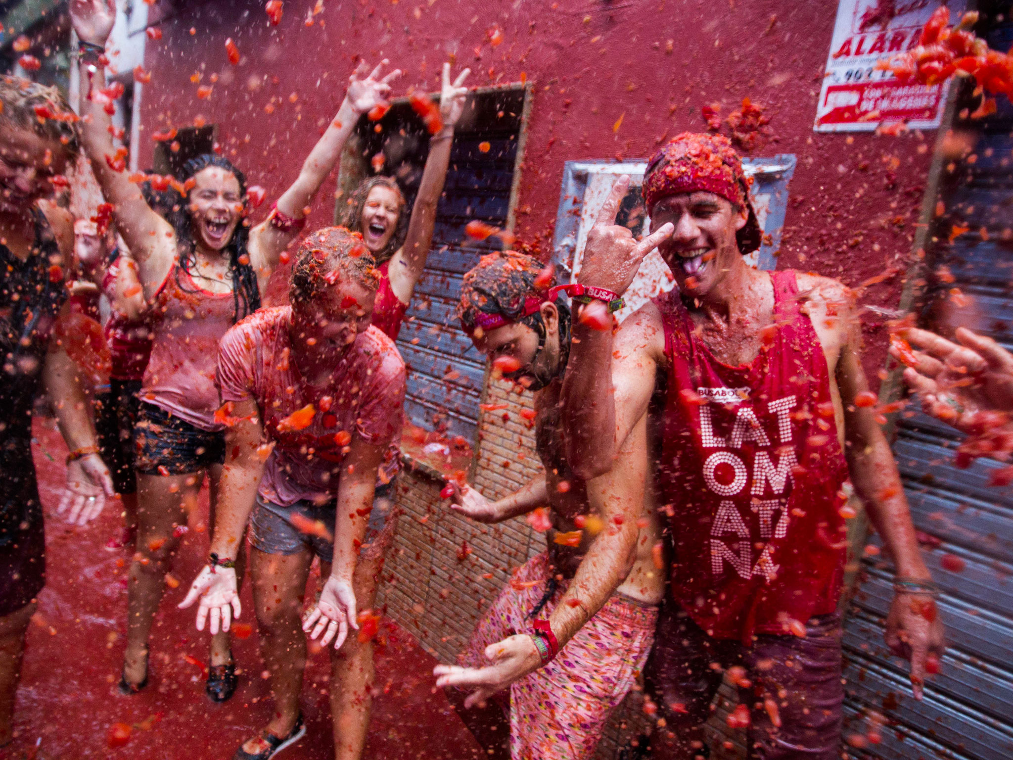 前往布紐爾小鎮~蕃茄節節慶會場。由「搶火腿大賽」揭開序幕,隨著一聲信號開始,卡車會運來大量的熟蕃茄,參加者們互相丟擲蕃茄,每個人全身被染紅,蕃茄沾在臉上、頭髮上,現場充滿著歡笑與濃郁蕃茄香氣,場面熱鬧非凡。過程大約持續一個小時,戰鬥結束後,街道和參與者會被大量的蕃茄汁弄得一片狼藉,參與者會共同清理街道,展現環保意識。