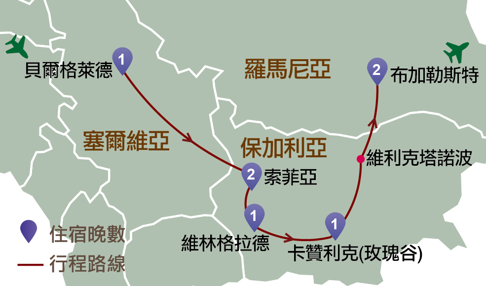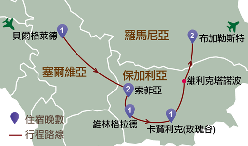 保加利亞:索菲亞、維林格拉德、普羅夫迪夫、卡贊利克(玫瑰谷)、維利克塔諾波