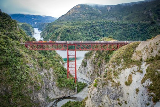 曾被National Geographic評選最美觀景火車路線之一,全程約2小時。 TranzAlpine往返於紐西蘭南島的東西海岸。在舒適車廂中欣賞坎特伯雷平原阡陌交會的農田、嘆為觀止的高山景色以及壯觀的峽谷和馬卡懷里里河(Waimakariri River) 流域的河谷。而後列車將攀上雄偉的南阿爾卑斯山到達亞瑟通道國家公園(Arthur's Pass National Park),貫穿南阿爾卑斯山脈。