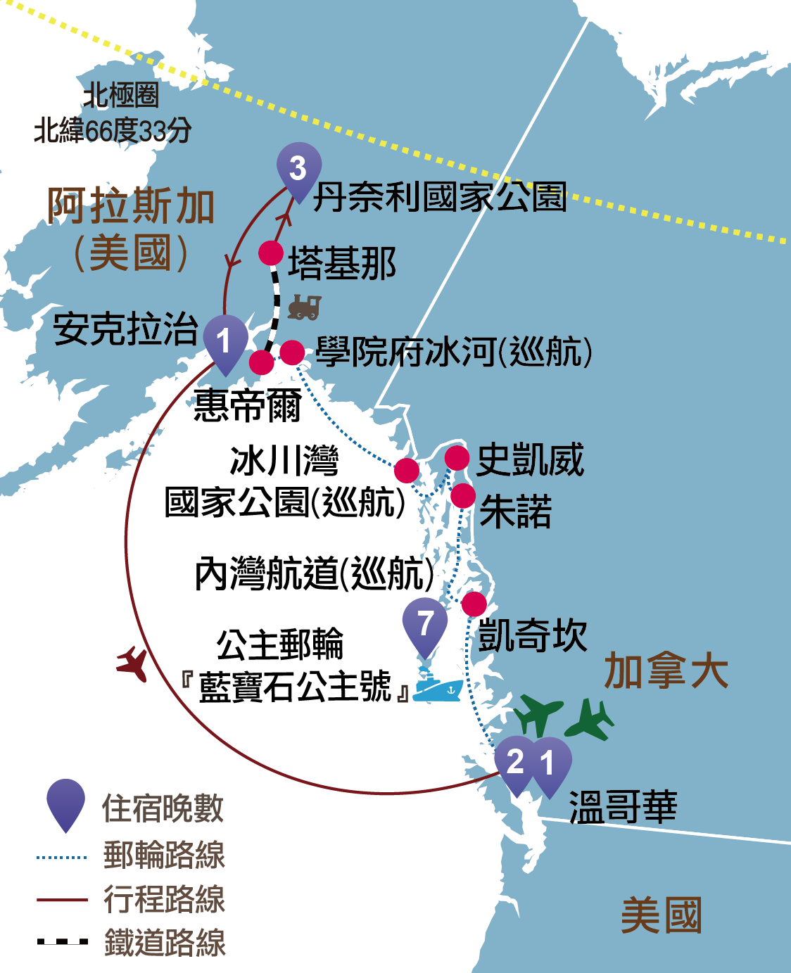 美國:阿拉斯加(凱奇坎、朱諾、史凱威、冰川灣國家公園、學院府冰河、惠帝爾、丹奈利國家公園、迴轉灣景觀公路、塔基那、安克拉治)
