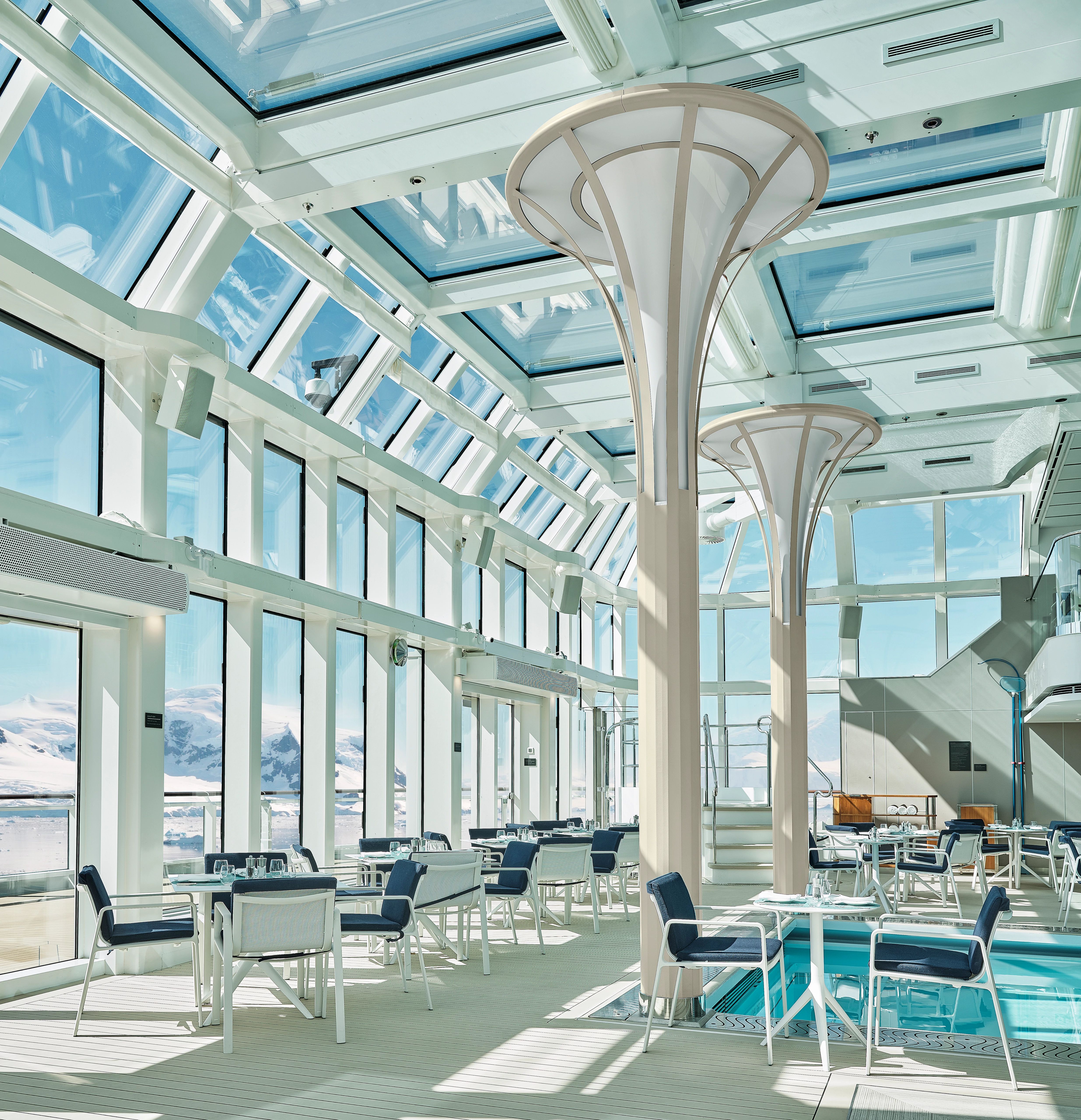 銀海遊輪擁有豪華級設施,餐廳、咖啡廳、全景休息室、探險室、泥巴間、美容院、水療中心、健身中心、游泳池、日光浴台、圖書館、精品店、醫療中心。於船上享受一系列豪華設施,從容愜意地探索地球盡頭。