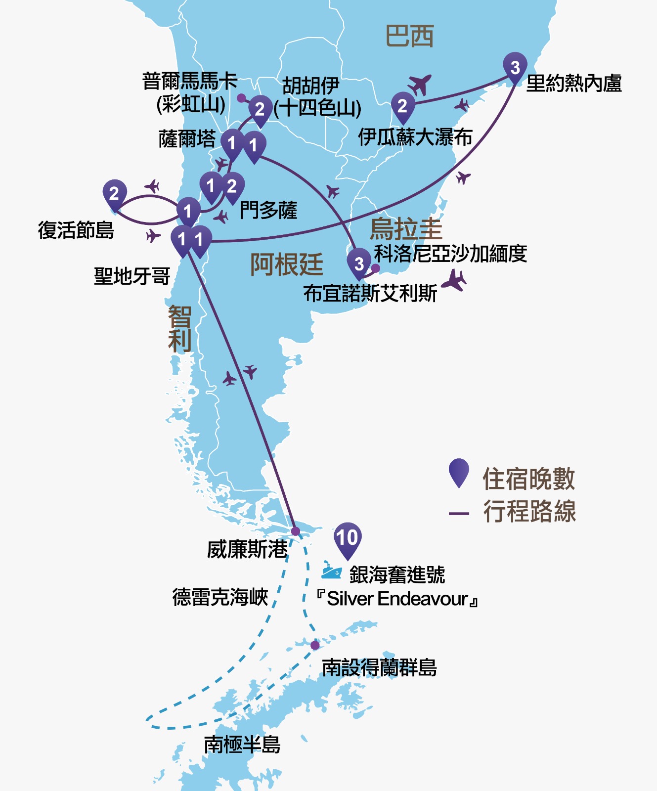 註:如因天氣影響或船隻航行班次取消,行程將更改前往阿根廷老虎三角洲遊船,敬請留意。