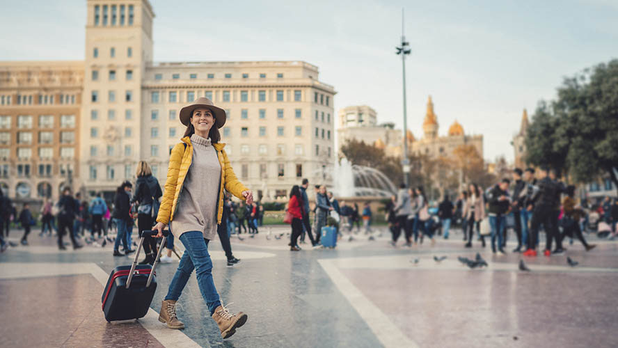 於加泰隆尼亞廣場自由購物。