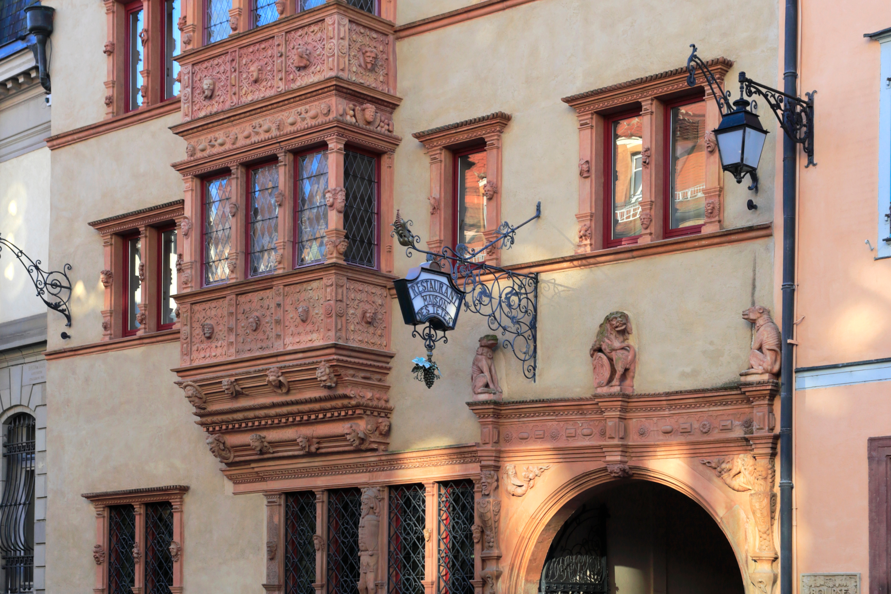 外牆外牆裝飾有超過100個雕刻人頭與奇特面孔雕刻,展現工匠技藝與幽默,成為科爾瑪舊城地標。
