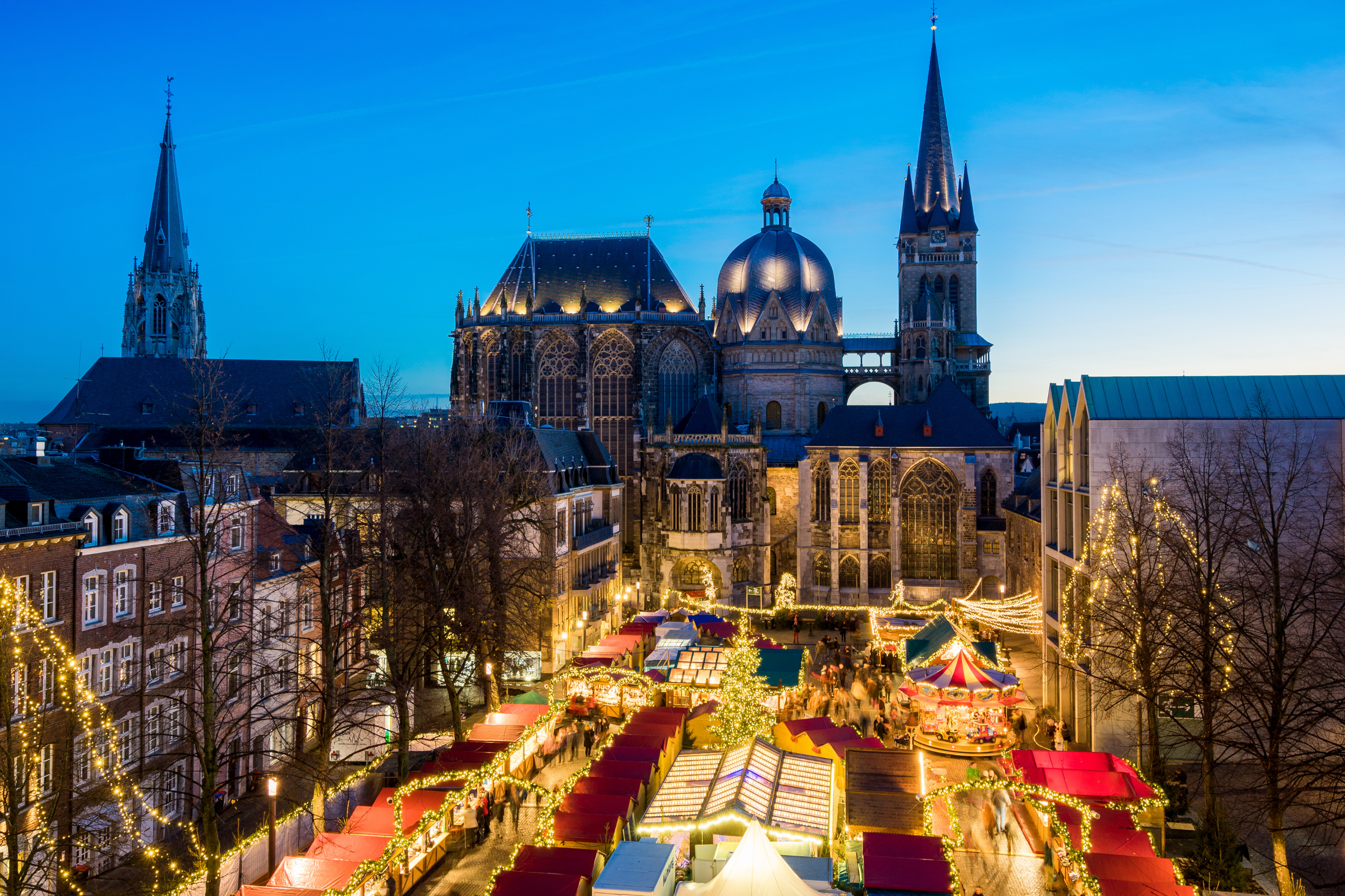 每年11月下旬開始,亞琛舊城區的大教堂與市政廳周邊便化身為浪漫的聖誕村莊。漫步其中,空氣中瀰漫著薑餅與熱紅酒的香氣,伴隨璀璨燈飾,營造濃厚節慶氛圍。
