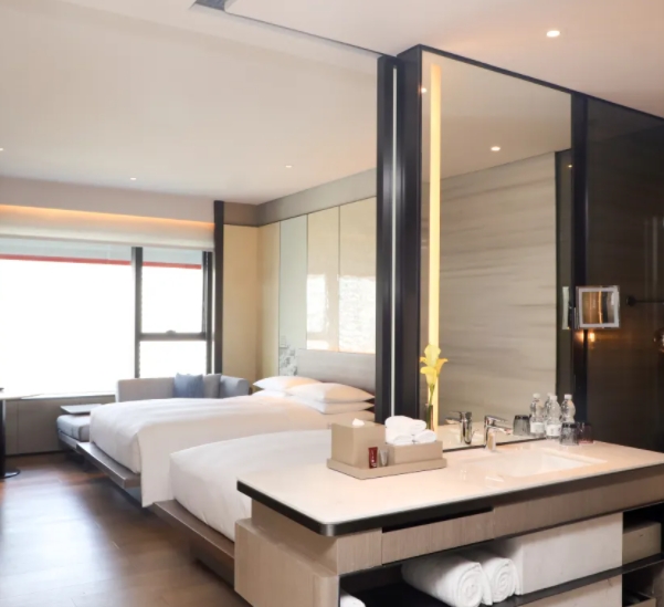 房間配備:空調、電視、保險櫃、電熱水壺、迷你冰箱、USB 插口、浴袍、吹風機、品牌洗浴用品、拖鞋、牙膏牙刷等