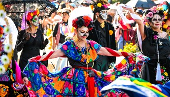 參與世界上獨一無二,既熱鬧且溫馨的亡靈節大遊行,每人畫上骷髏頭妝,一起上街盡情狂歡 | Tour code: SCHE16T