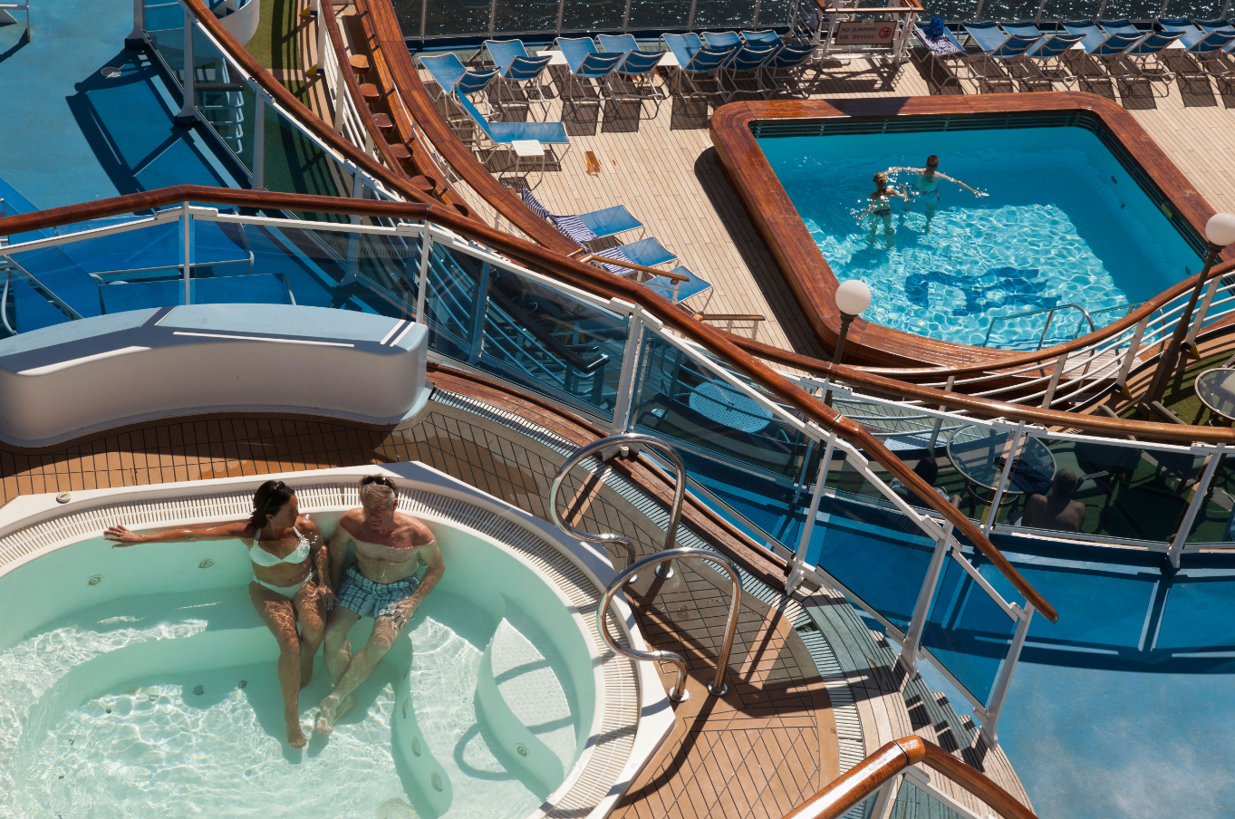 多個泳池與熱水池遍佈船上,無論是日光浴、游泳還是泡湯,都能為旅客帶來休閒與舒緩體驗