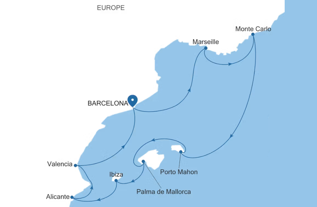 | 29 Aug | Sat | 巴塞隆拿, 西班牙 登船 Barcelona, Spain |