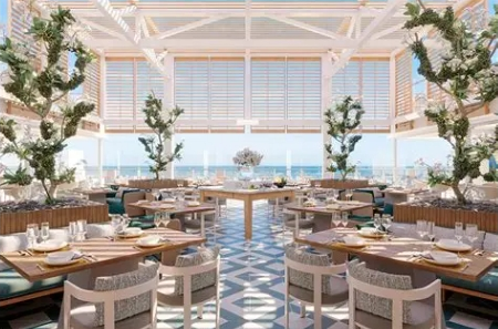 La Dame 為船上唯一收費餐廳,以法國傳統 haute cuisine 為靈感,提供多道式美酒配餐體驗。華麗環境與細緻服務,專為追求極致品味的饕客
