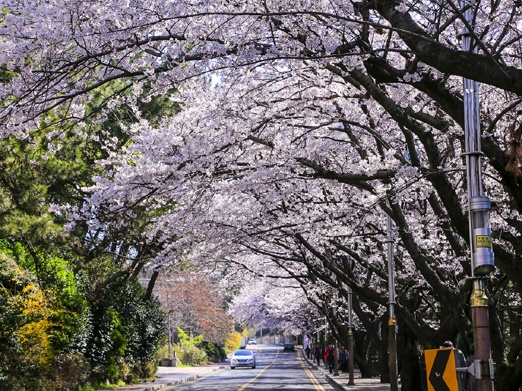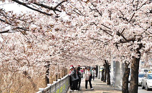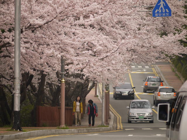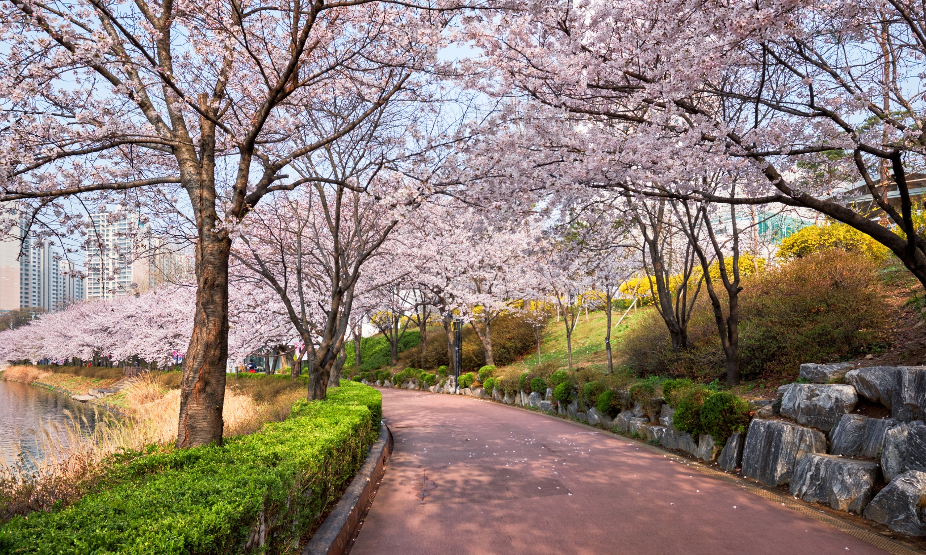 汝矣島櫻花街: 位於首爾的漢江中,兩側種植了約1400棵櫻花樹,每年春季這裡的櫻花盛開時形成壯觀的「櫻花隧道」。