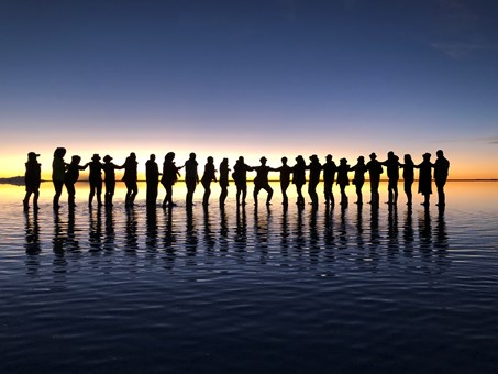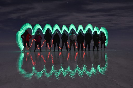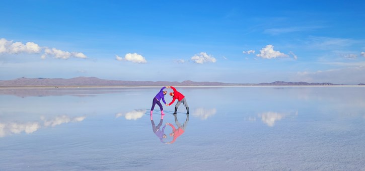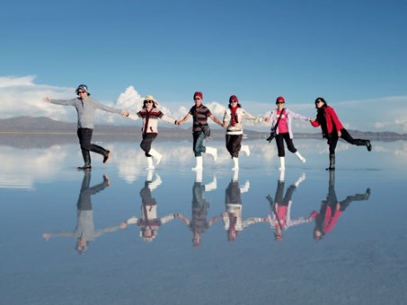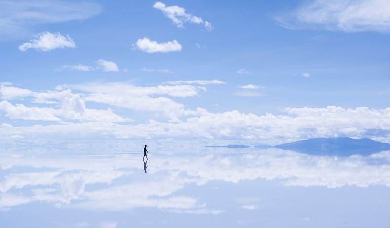 世界上最大的鹽湖。雨季時,大片的鹽晶體於雨後產生反射,平靜的湖面反射著天空景色,呈現出如天地合一的倒影,就是聞名的「天空之鏡」。如天氣情況許可,安排於鹽湖觀賞日落美景及晚上觀星。