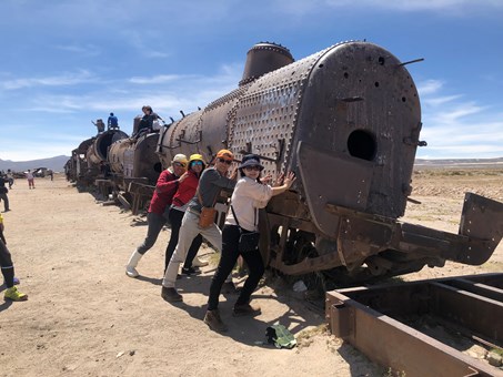 放置著昔日西班牙殖民時期用來運送礦產到智利的荒廢火車。