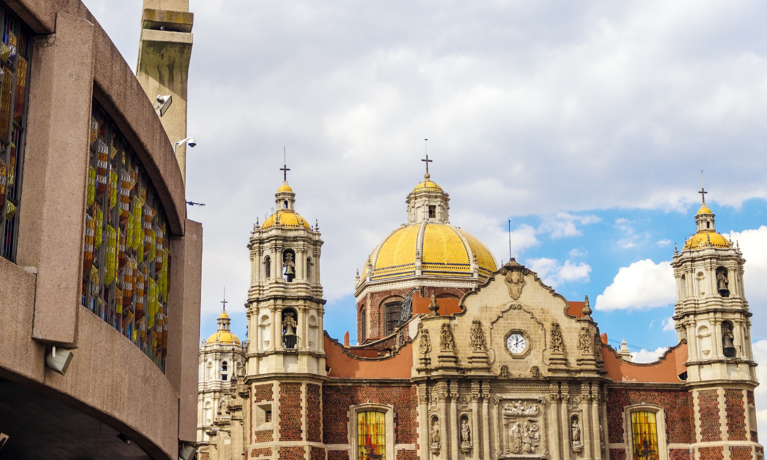 瓜達露佩聖母顯靈後,當時的主教決定建造教堂。於1531年,因為地基鬆軟,令教堂沉降,變成危樓,因此在1974年於舊址旁建造新的教堂。教堂造型如圓頂墨西哥草帽,有350個支架預防下陷。站在莊嚴的教堂中,感受聖母在當地人民心中的地位。
