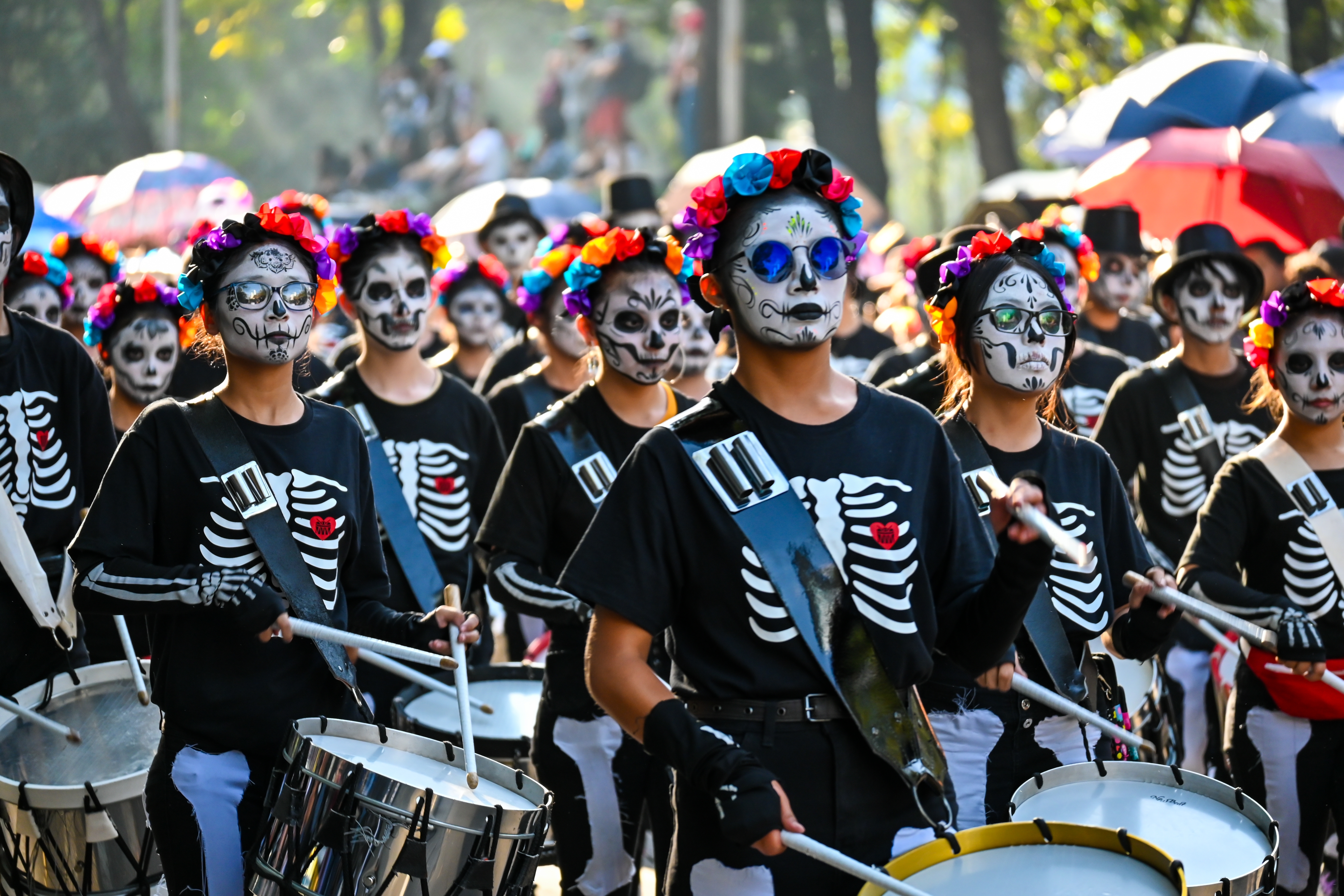 ★特別安排專人畫臉骷髏彩繪及節慶配飾,讓您帶著精緻的特殊妝容及造型融入熱鬧的亡靈節大遊行隊伍。