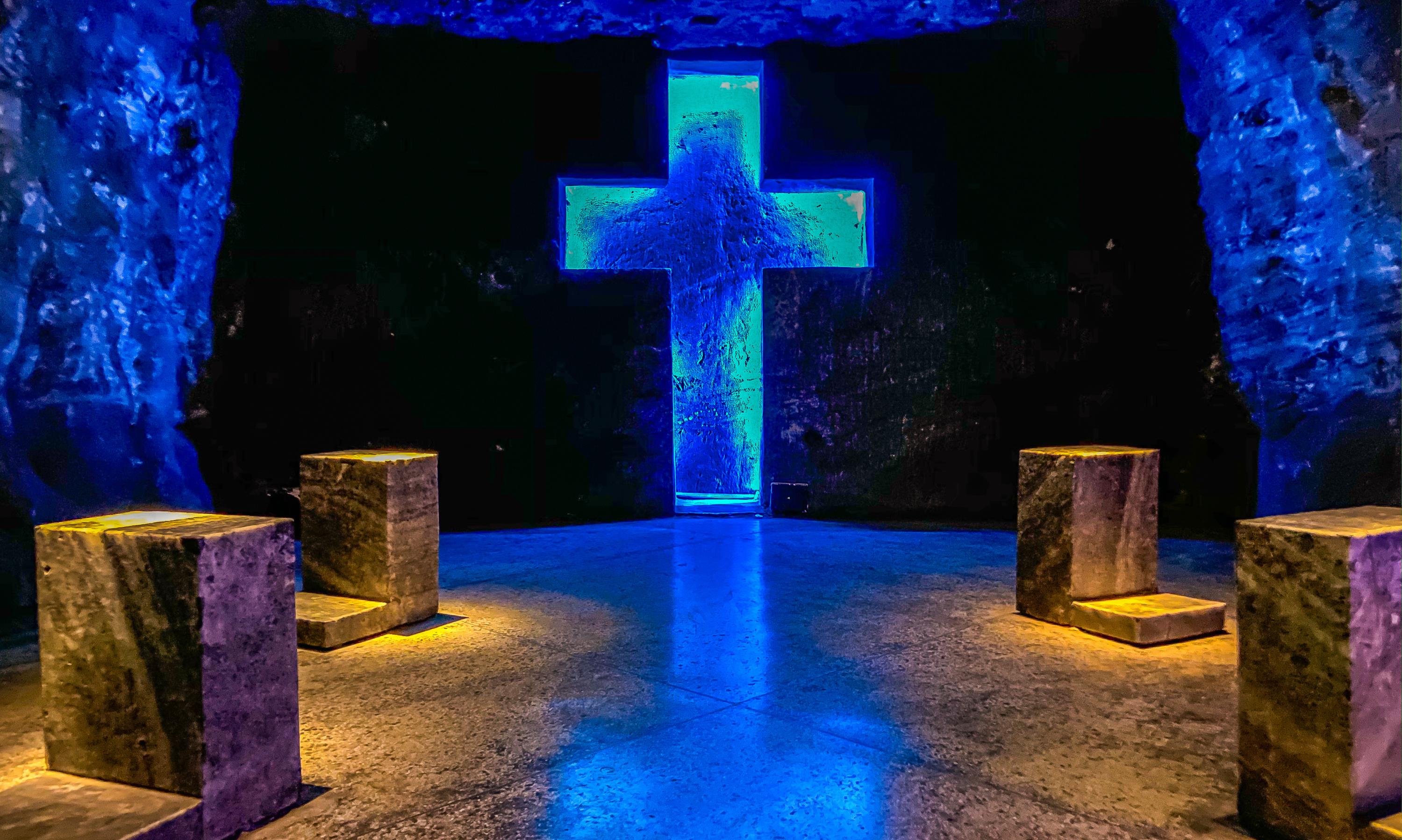 教堂前身是一個舊鹽礦,於地底180米以下,而這個礦井可以追溯到Muisca人時期,一開始是礦工們在地下為了祈福之用,後來不斷的擴建。教堂於1995年向外開放,最高可容納8400人,是世界上最大的地下教堂,沿著鹽礦通道,一層層深入地底,沿途許多打著柔和彩色燈光的十字架,以及從鹽層開鑿出來的小教堂和聖壇,十分壯觀,被稱為哥倫比亞的第一奇蹟。