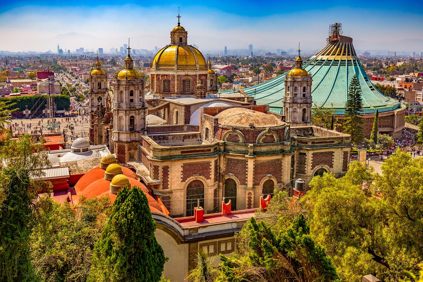 瓜達露佩聖母顯靈後,當時的主教決定建造教堂。於1531年,因為地基鬆軟,令教堂沉降,變成危樓,因此在1974年於舊址旁建造新的教堂。教堂造型如圓頂墨西哥草帽,有350個支架預防下陷。站在莊嚴的教堂中,感受聖母在當地人民心中的地位。