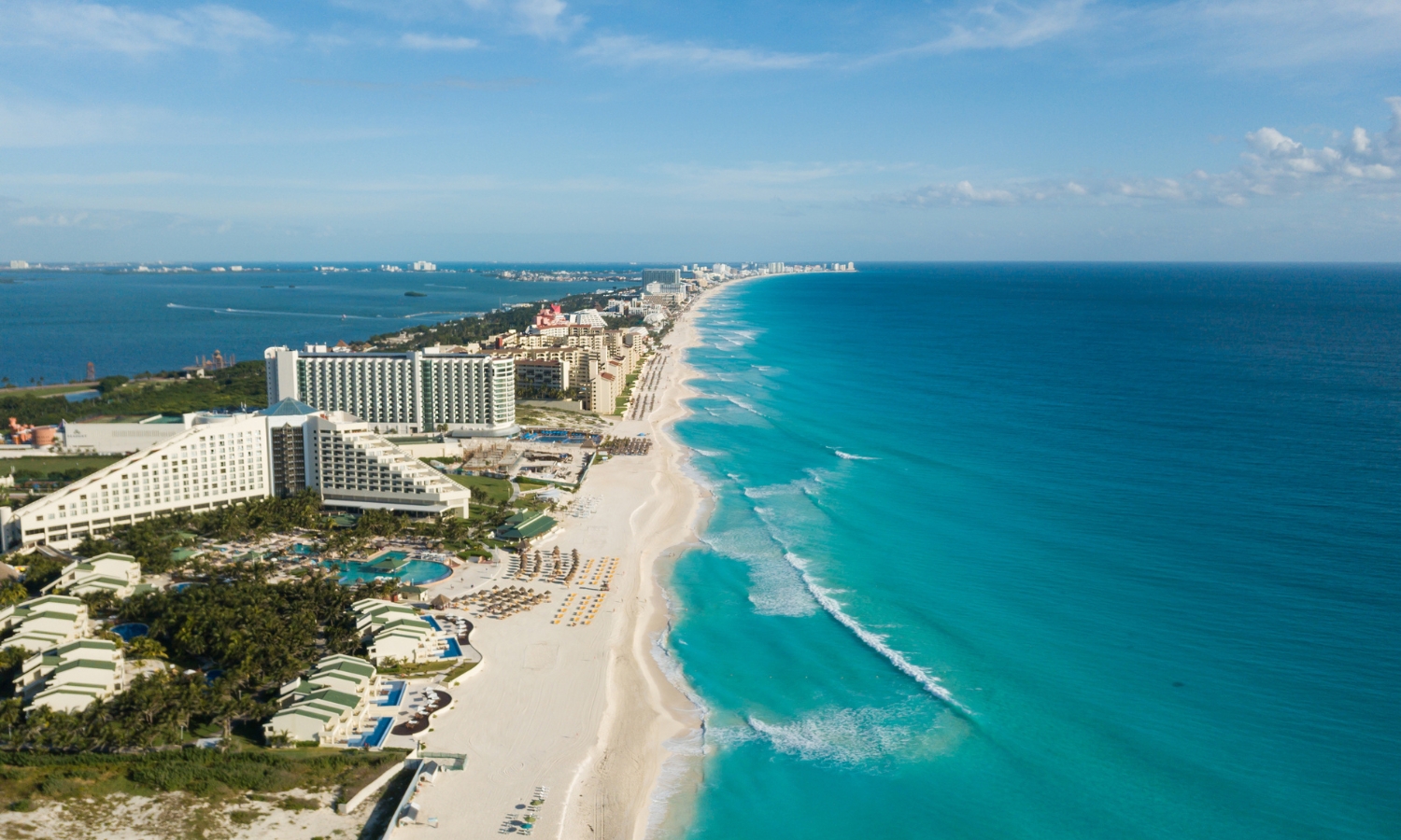 坎昆在古馬雅語譯為「掛在彩虹一端的瓦罐」,彷彿整個加勒比海的湛藍都從坎昆傾洩而出,20公里長、細軟如奶粉的白砂海灘,為世界十大海灘度假勝地。
