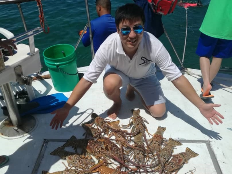 乘船暢遊加勒比海,捕捉新鮮生猛大龍蝦,各類海產,海螺等,
