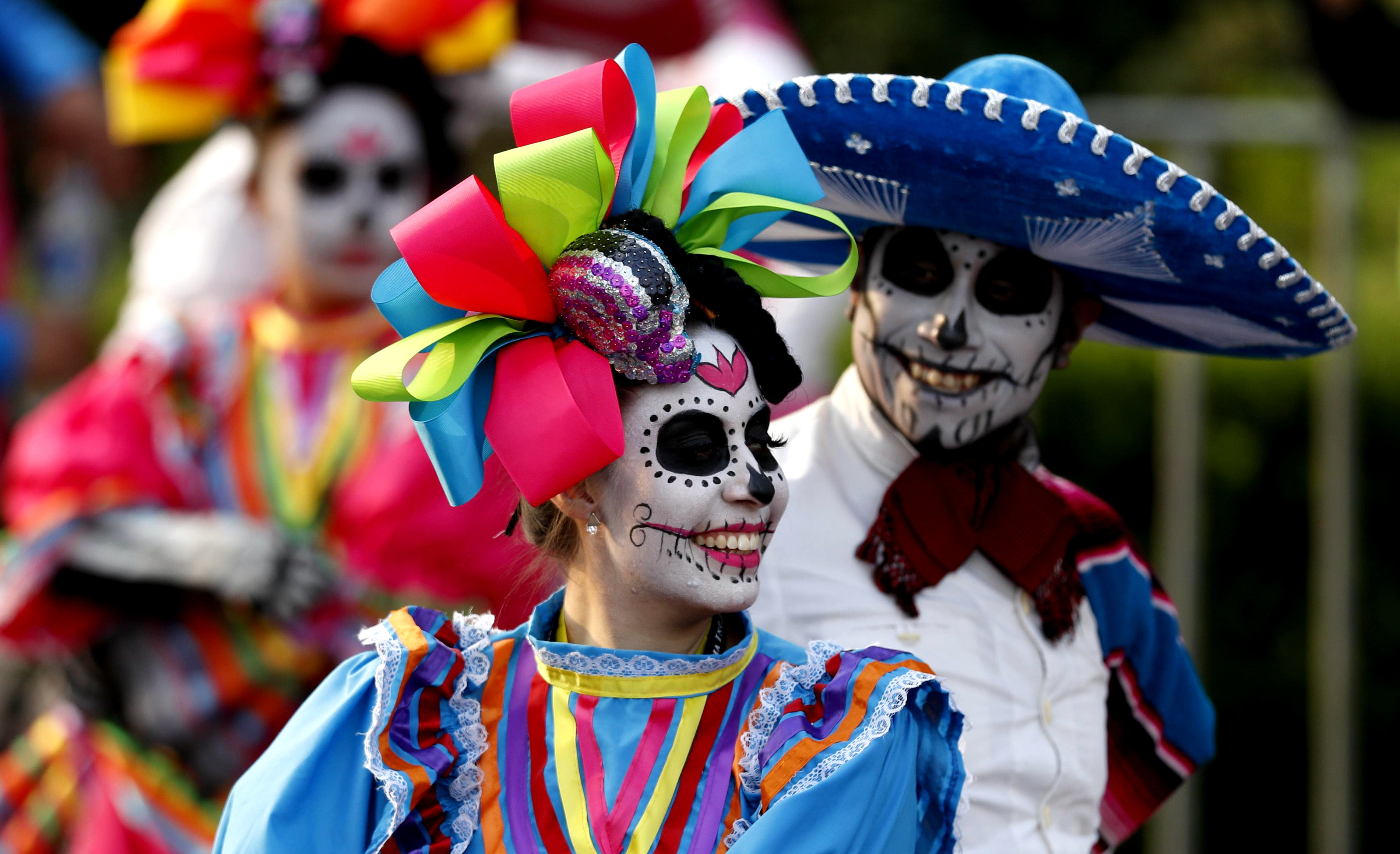 參與一年一度盛大的亡靈節大遊行。墨西哥人會用慶典與狂歡為逝去的人祈福,用藝術佈置、特色美食、歡樂遊行來展現對於生命的瀟灑及豁達。街上會掛起一串串彩色的小旗子,地面鋪滿鮮豔明亮的萬壽菊,是世界上獨一無二的大派對,當地人會穿上印有白骨的衣服,化上逼真的骷髏妝,走上街頭用歡笑與喜悅迎接親友亡靈的歸來,隆重地慶祝生者與亡靈一年一度的團圓。