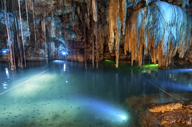 水洞是西班牙語“天然井”的意思,這些被地下水侵蝕的岩層溶蝕成大大小小的空洞,漫長歲月下由雨水浸蝕而成巨大的天然井。據傳說,瑪雅人曾經用古井的污水祭祀雨神Chac,感謝雨神創造如今這非一般的景象,連瑪雅王室成員都會在水池內放鬆身心和舉行祭祀儀式。天然井可供遊人跳水游泳,遊客盡興。