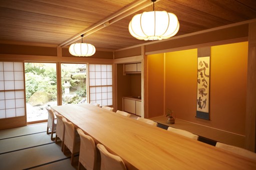 餐廳坐落於一棟經過改建的明治時代建築中,空間融合日式與法式元素,營造出古色古香且溫馨的用餐氛圍。餐廳氛圍優雅舒適,設有開放式廚房,讓客人能近距離欣賞主廚的精湛技藝。