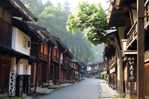 馬籠宿: 因其保存完好的江戶時代風貌而聞名,街道兩旁是連綿的木造建築與石畳坡道,體驗當年旅人的生活氛圍。