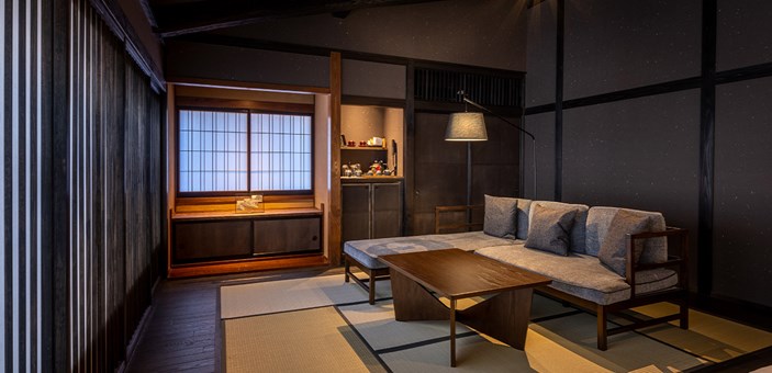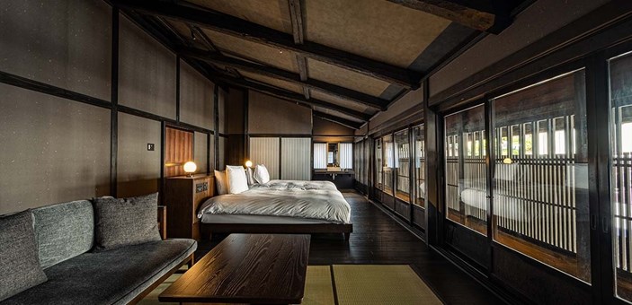 由一座擁有200多年歷史的17世紀清酒釀酒廠和一棟傳統木箱工匠住宅改建而成,融合了旅館、餐廳、清酒莊、酒吧、畫廊和浴場等多種設施,旨在讓客人於百年歷史建築中體驗多元文化與當地風情。每間房間均保留了古老木材的質感並結合現代舒適設施,營造寧靜且富有歷史感的住宿氛圍。