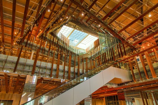 富山市玻璃美術館: 是一座與市立圖書館的公立美術館,由世界知名建築師隈研吾設計,外觀靈感來自立山連峰的冰壁和山脈形態,展現出光影變化與自然融合的美感。