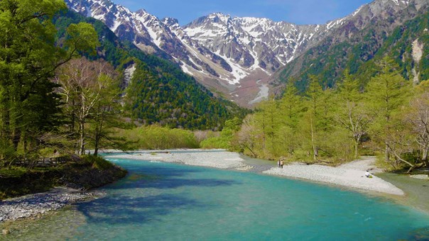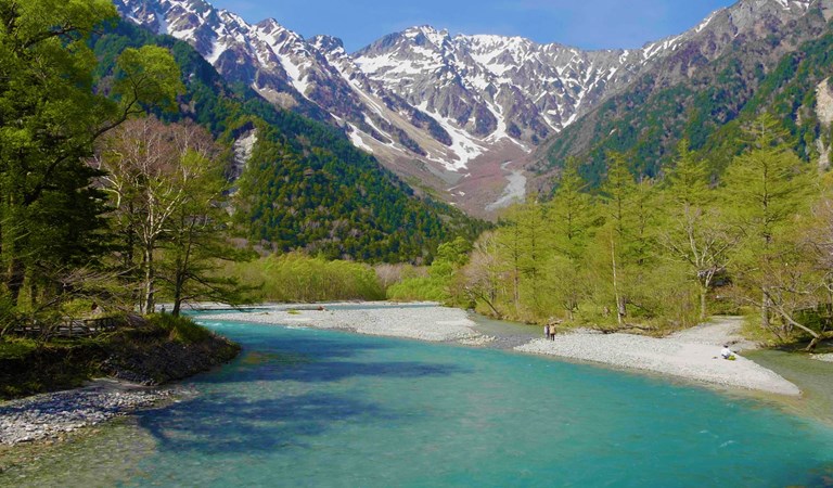 上高地: 是飛驒山脈(北阿爾卑斯山脈)南部梓川上游的一個高山谷地,海拔約1500米,四周被海拔3000米以上的群山環抱,如穗高岳、槍岳等,景色雄偉壯麗。