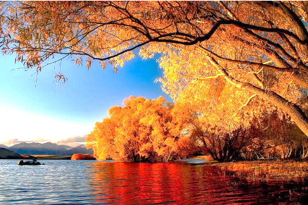蒂卡波湖:位於南島中央星空保護區,為新西蘭的第八大湖泊。四月時,湖邊的魯冰花已經凋謝,取而代之的是金黃色的秋葉,為湖泊增添溫暖的色調,欣賞秋日美景。
