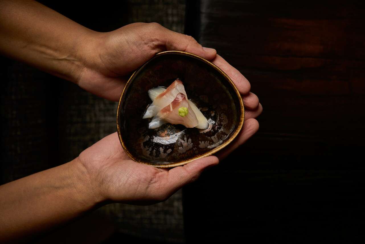 主廚會在客人面前切乾鰹魚,傳達了日式餐飲服務面臨消失的原始氛圍。餐廳內部設計典雅,提供私密包廂和吧台座位,營造出舒適而寧靜的用餐環境。