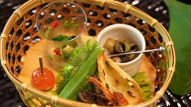 餐廳專注於「摘草料理」,這種料理強調使用新鮮的野菜、野草和當地食材,由第四代傳人久人氏親自進入山野採集。菜單根據季節變化,提供各種以野菜和山產為主的精緻料理,讓客人能體驗到自然的味道。