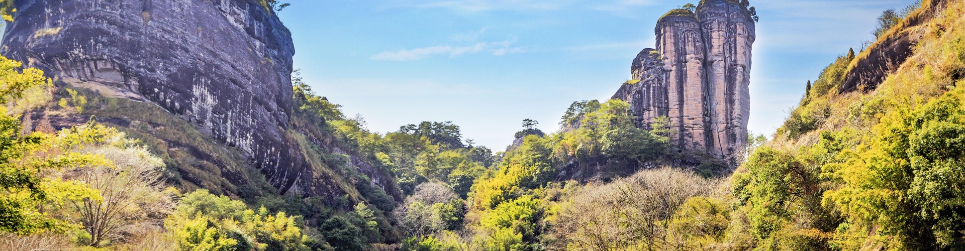 大紅袍景區: 大紅袍茶為武夷山岩茶之極品,相傳於歷史上為皇家貢茶,大紅袍母樹生長的環境於岩坡上。團友可欣賞到青翠嫩綠的茶園、生長於岩壁上的茶樹。
