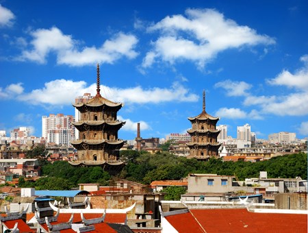 開元寺東西塔: 福建最大的佛教建築,千年古剎寺前聳立著兩座標誌性的石塔,東塔「鎮國塔」及西塔「仁壽塔」。