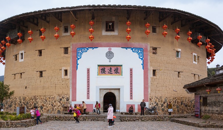 懷遠樓: 是一座雙環圓形土樓,圓中有圓,風格別致。建築工藝精美,保存完好,它的設計獨特,前方平地上有用鵝卵石排成的太極圖案。