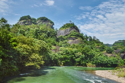 武夷山風景名勝區: 世界雙遺產地,典型的丹霞地貌,素有「丹山碧水.奇秀甲東南」的美譽。著名的風景名勝有天遊峰風景區、九曲溪竹筏漂流、大紅袍景區、一線天景區等。