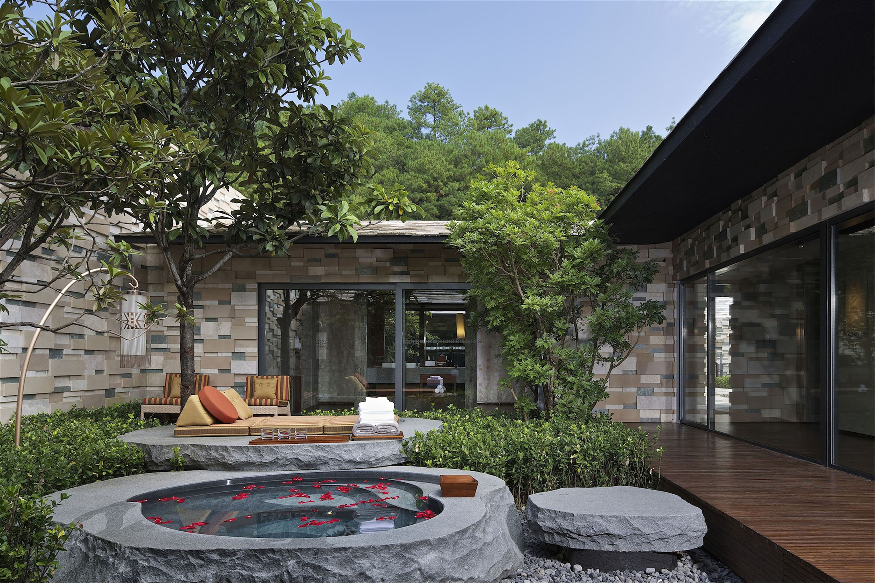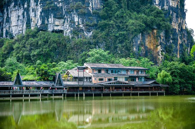 地處灕江江畔,酒店亭台樓閣,引層巒疊嶂的翠竹遠山入畫,將現代度假生活與自然山水相融合,滿眼江畔青峰、綠意美景。為住客打造一處遠離喧囂的世外桃源。