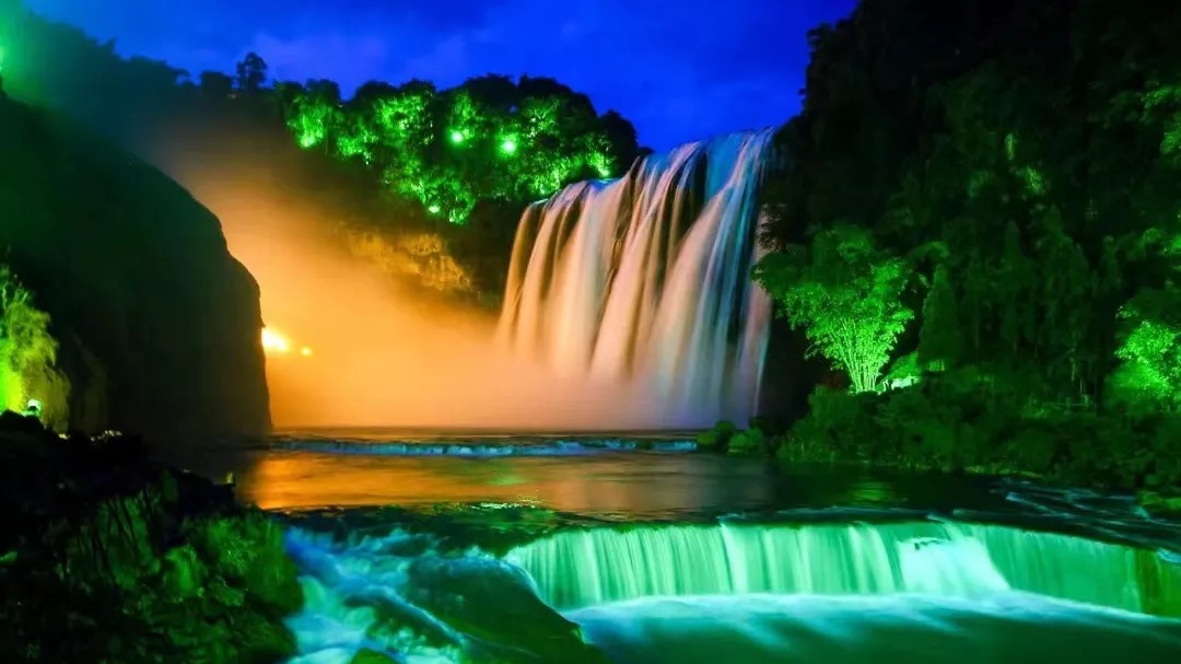 夜遊黃果樹大瀑布: 是國內首個以自然峽谷為載體的沉浸式光影夜遊體驗,融合科技與民族文化,為遊客呈 現「此心安處是吾鄉」的奇幻之旅。